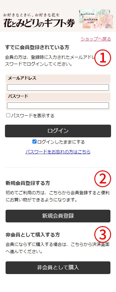 - 2→3. ご購入方法の選択(※会員ログインしていない場合のみ表示されます。)