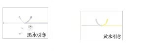 黒水引きは一般的に使われる仏事用ののしで、黄水引きは、関西地方や北陸地方などで広く利用されています。